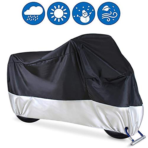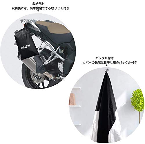 ohuhuのバイクカバーは価格が安いのにかっこいいのがおすすめポイント。下部がシルバーのバイクカバーは汚れが目立ちにくいですね。生地は150Dで厚手とははいえませんが、携帯性に優れています。
