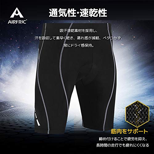 AIRFRICより販売されているレーサーパンツ・ショーツタイプは、体へと吸い付くようなフィット感を持ち、なおかつ伸縮性にも富んでいるため、ロードバイク初心者も気軽に履けるロードバイク用パンツです。縫い目を平らに仕上げて突起をなくすことで風の抵抗を軽減し、空気抵抗を抑えながら履けるウェアになります。