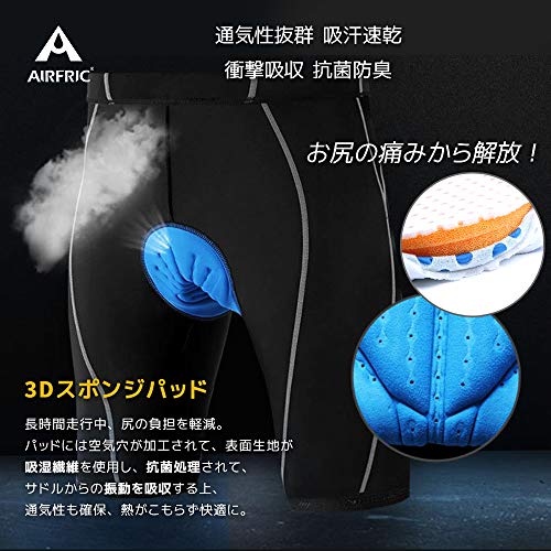 AIRFRICより販売されているこちらのサイクルビブショーツは、ロードバイクでのロングライドをする時にも快適に着用できるパンツです。素早く汗を吸収して乾きも早く、着用中に蒸れ感が少なくてドライな状態をキープできる吸汗速乾素材で作られてます。