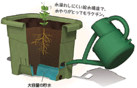 ガーデニングを行う上で悩ましいのが土の持ち運びと使い終わった土の処分です。その点、底面給水の仕組みを理解してうまく活用すると、土が少なくても植物が育ちます。根が植木鉢の底から水の方へと伸びていくからです。さらに、土が少ない分、軽いので移動も簡単に行うことができます。