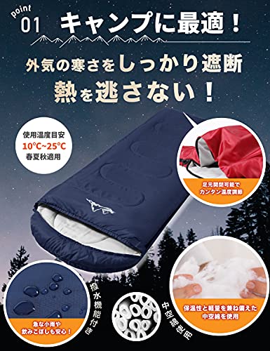 体が動かしやすいデザインを採用し、自宅の布団を使用している感覚で眠りにつける人気商品です。中綿には、軽くて速乾性のあるホローファイバーを使っています。適度な保温性があり、夏でも気温が下がりやすい場所のキャンプにもおすすめです。