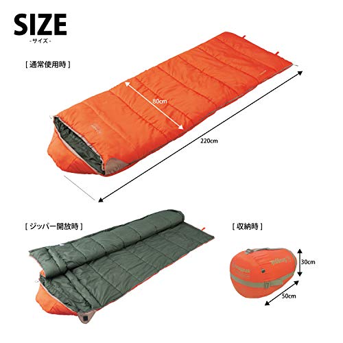 中綿にはシリコン加工ポリエステル中空繊維「Isofibre」を採用しているため、濡れても暖かさを保ちます。化繊の中綿なので洗濯機で丸洗い可能です。遠くからでもよくわかるオレンジカラーのシュラフになります。コスパが最高で、収納も苦にならないという口コミもあるスナグパックの人気シュラフです。