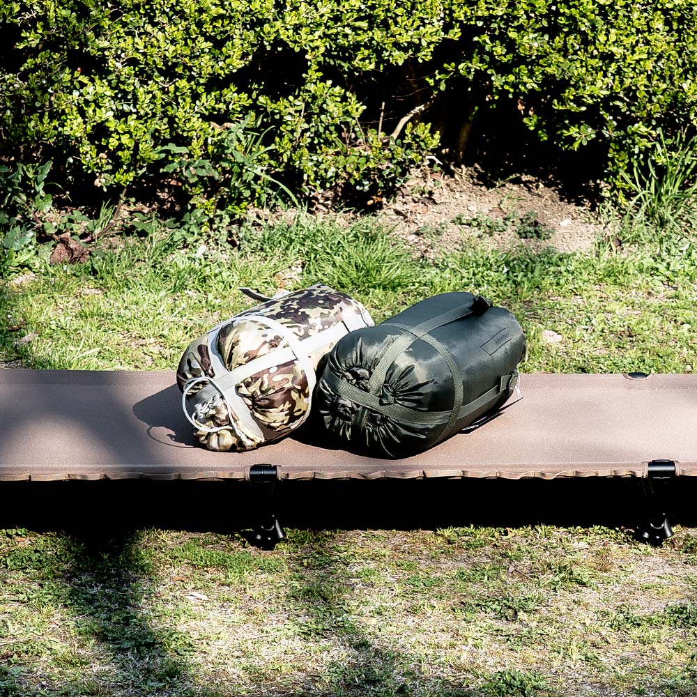 アウトドアとの相性もよいタクティカルカラーのシュラフになります。圧縮用バッグも付いているので、使い終わった後にはサイズを小さくして持ち運びすることが可能です。
