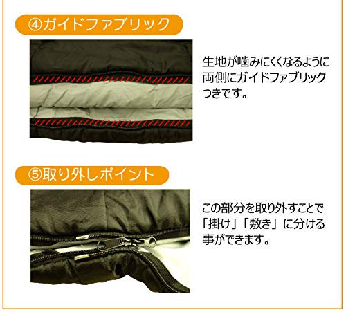 寝袋なので寒いときはファスナーでつなげてきちんと保温し、暑いときはファスナーを開き敷布団と掛け布団のように分けて使え中綿がダウンのため2.6kgしかなく軽量です。