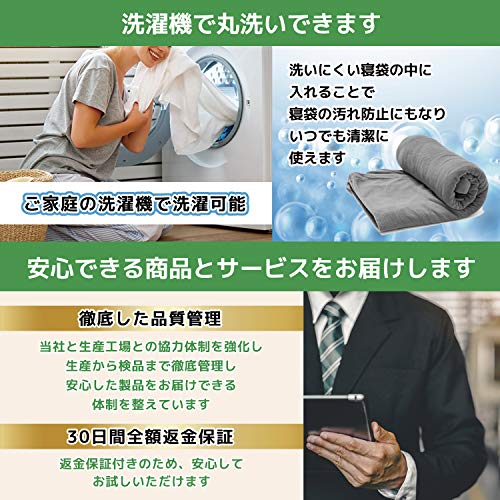 3シーズン向きのため収納サイズは直径12×29cmしかなく布団と比べると非常にコンパクトになり部屋の中が広く使えて便利です。部屋の中で使うことで3シーズンようでも暖かく使えます。素材は化繊のため洗濯などのメンテナンスも容易です。