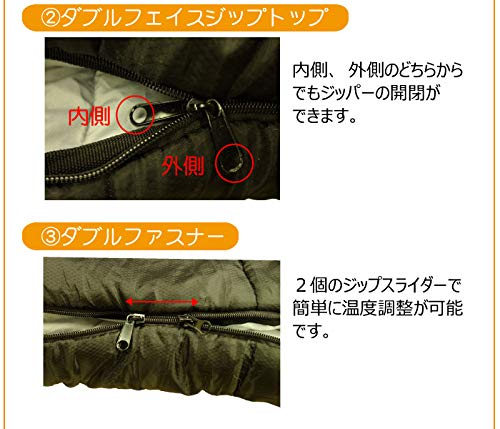 同じ寝袋をファスナーで連結できるため布団のように使用でき小さな子どもと寝られるようになるなど使いやすいところがおすすめです。適温は12℃前後となりマットレスと併用すると10℃程度でも使えます。