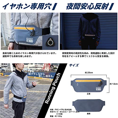 ゴリックスの防水ランニングポーチは、ランニング中に装着していることを忘れるほどに軽量なスマホ収納アイテムです。日々使っているスマホ以外にも、必要であればお金やカード類などの小物を入れて持ち運びできるポケットが付いています。