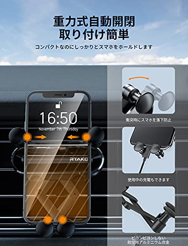 「RTAKO スマートフォンホルダー」は、ダッシュボードへの取り付けも可能な車用スマホホルダーです。粘着テープが付いているため、必要に応じてダッシュボードにも接着できます。最新の車用スマホスタンドはエアコン取り付けと、ダッシュボード両方に対応しているものも多いです。