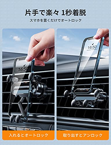 車の中にスマホを固定しながら、高速充電したい方におすすめなのが「Auckly 15W」です。なんと15Wの高速充電に対応しているため、車内でもスピーディーな充電ができます。また、エアコン吹出し口に取り付けるため、充電で熱くなっても放熱が可能です。