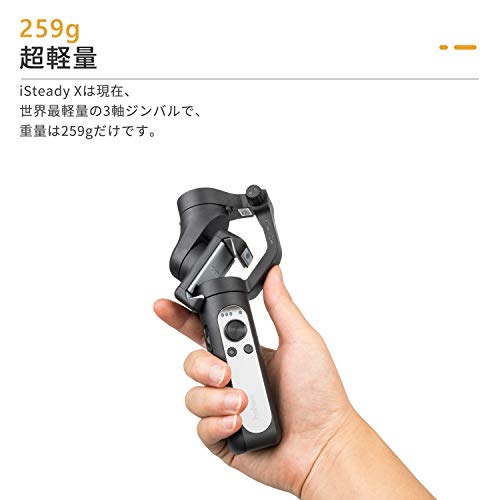 コンパクトで軽量なスマホ用スタビライザーをお探しの方におすすめなのが、「iSteady X スマホジンバル」です。なんと259gと軽量なので、片手でも簡単に扱えます。長時間スマホ用スタビライザーを操作したい方から人気で、ワンクリックでのトラッキングなどにも対応している最新モデルです。