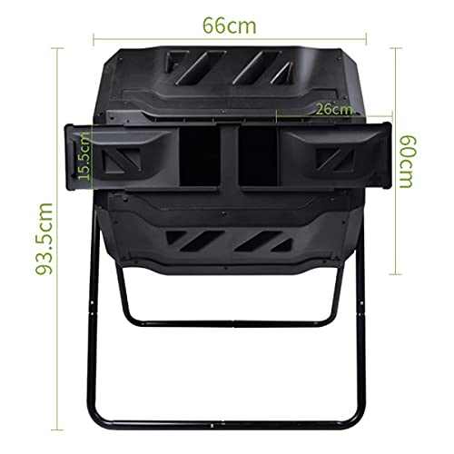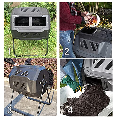 このコンポストは据え置き・回転式です。コンポスト内部は2部屋に分割されており、片方が生ゴミでいっぱいになったらその分解を待ちながらもう1つの部屋で新しい堆肥づくりが可能。無骨ながらおしゃれなデザインで庭に置けば貫禄もありますね。