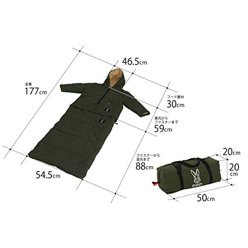DODが発売するもう一つの人型シュラフです。DODには珍しい人型寝袋が2種類あり本品は中綿がダウンになっていて軽量になっています。そのため寝袋を着用した状態でも身動きしやすいモデルになっていて暖かさ軽さを両立した機能性の高いシュラフです。