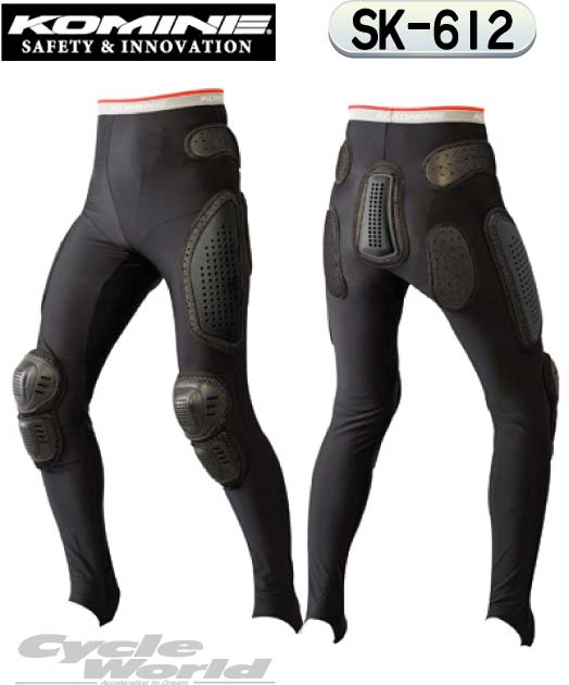 バイク用品の有名メーカー・コミネのバイク用プロテクター「SK-612」は、下半身の膝・お尻・太ももなどあらゆる部位をしっかりと衝撃から守ることができる人気プロテクターです。強度に優れたカードプラスチックガードを尾骨・大腿部に配置していて、膝部分にはCE規格のプロテクターを配置しています。