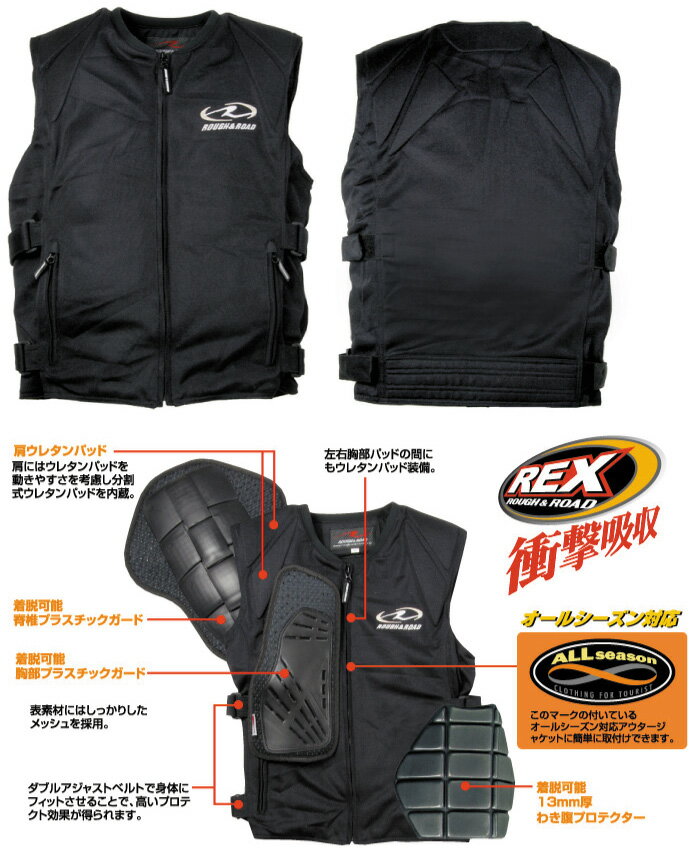 ダブルアジャストベルトでしっかりと上半身にフィットさせられることができるので、高いプロテクト効果をを得られます。1.3mmと薄い着脱可能な脇腹プロテクターも装備されているおすすめ商品です。