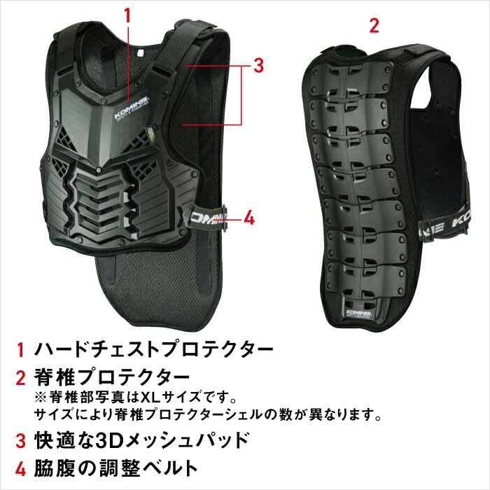 国内の有名バイクウェアメーカー・コミネより販売されているスプリームボディプロテクターは、バイクツーリング中などに身につければ、胸部や脊椎をしっかりと保護できる上半身用のボディプロテクターです。