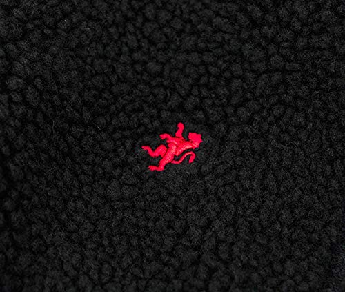 フロント部分には大きなカンガルーポケットが付いていて、小物を入れておけるだけでなく、手を冷やさないように中に入れて温めることもできます。カラーはブラック×ホワイト、ダークマルーン×ブラックの2色より選べるフリースパーカーです。