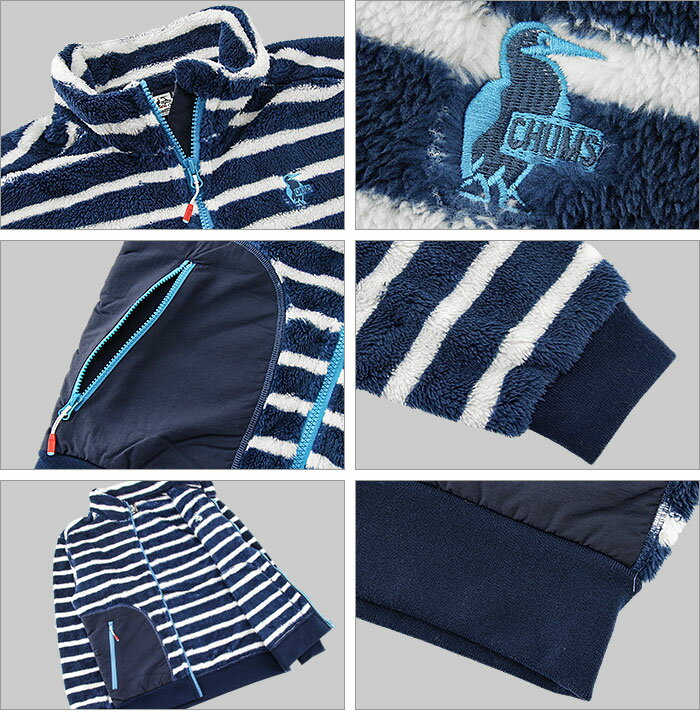 ポケットの生地を切り替えていて、左胸にはチャムスのブービーフェイスロゴの刺繍を入れてアクセントにしているアイテムです。裾と手首にはリブが付いていて、冷気が入り込まないように抑えることができます。スタンドカラーでデザインもすっきりとしているフリースジャケットです。