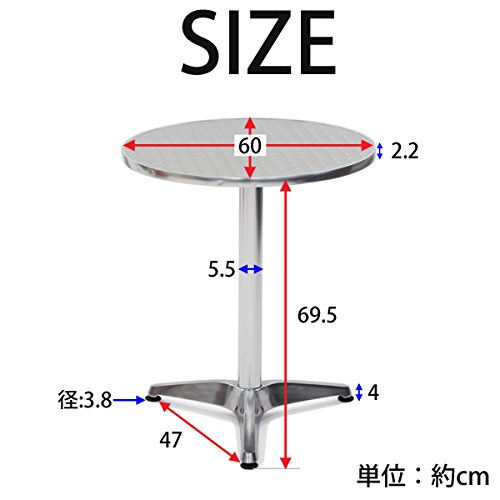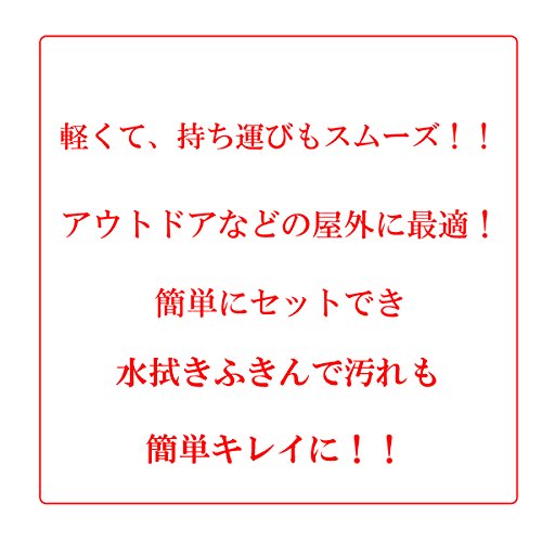 脚部には調節高さ範囲が約0.4cmのアジャスター機能が付いているので、屋外の地面の上で使う時にもちょうどよい高さにできて便利です。軽量なアルミ製なので持ち運びも簡単にできます。天板が汚れても水拭き布巾などで簡単にお手入れすることが可能です。