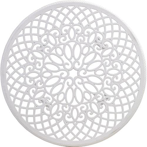 雨ざらしに強いこちらのアルミガーデンテーブルは、錆びにくくて軽量なアルミニウムを素材として作られている屋外用のおしゃれなガーデンファニチャーです。美しさを際立たせるデザインの模様が施された天板が装備されています。