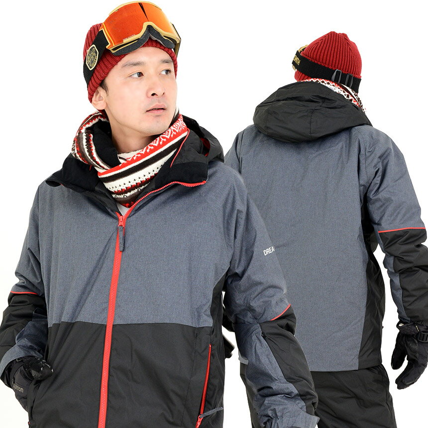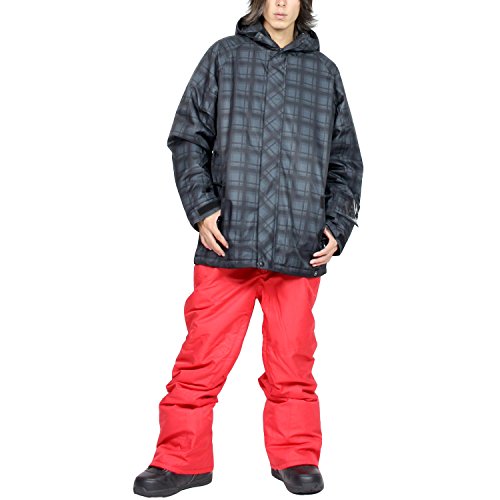 れからスノーボードを始めたいと考えるメンズにおすすめな激安価格のスノボウェア上下セットです。飽きがこないシルエットに落ち着いたモノトーンカラーをベースに切り返しを入れてアクティブな印象も持たせたデザインのスノボジャケットにスノボパンツがセットになっています。