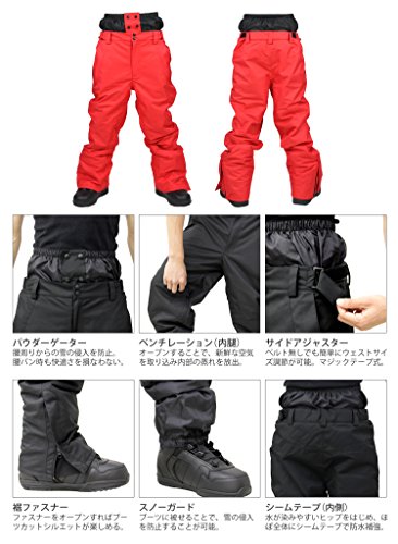 スノボパンツには腰まわりのフィット感を調整できる機能、スノーボードブーツの着脱を容易にしてくれる機能、ジャケットと同じく換気機能も付いています。中綿入りで体を温かくしながら身に着けられるスノボウェア上下セットです。