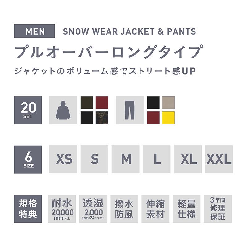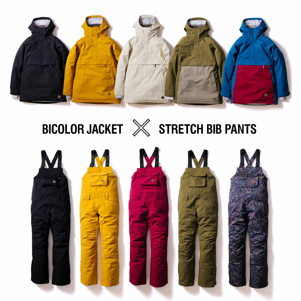 スノボウェア上下セットは、スノボジャケットとスノボパンツがあらかじめセットになっている商品で、セットアップとも呼ばれています。ジャケットとパンツを単体で購入するよりもお得なお値段で購入できる製品が豊富なことも魅力です。