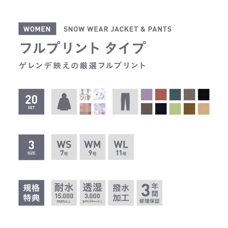 こちらのレディース用スノボウェア上下セット・IS-21は、1万円弱というお値段で購入できるスノボウェアのジャケット&パンツのセットアップ商品です。ジャケットデザインも豊富で、パンツの色もたくさんあるため、お好みの組み合わせでチョイスできます。