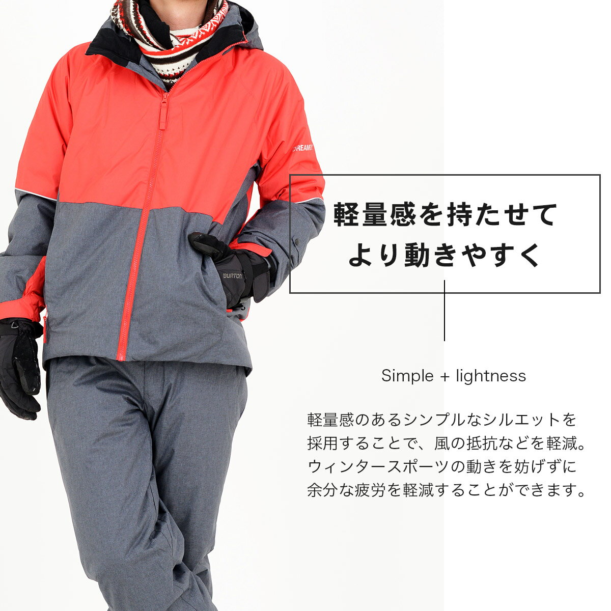 汗をかいた時にも水蒸気を外に逃がす透湿性も高いため、ドライな着心地を維持できるスノボウェア上下セットです。