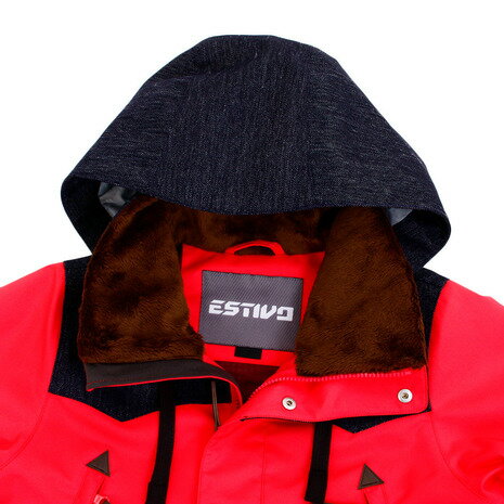 スノボウェアブランド・エスティボのスノボ用撥水パーカー「チアフルジャケット」は、肩とフードにナチュラル感のあるデニム生地、身頃部分には伸縮性の高いストレッチ生地を使用していることでカジュアル感と動きやすさを実感できるように仕上がりました。