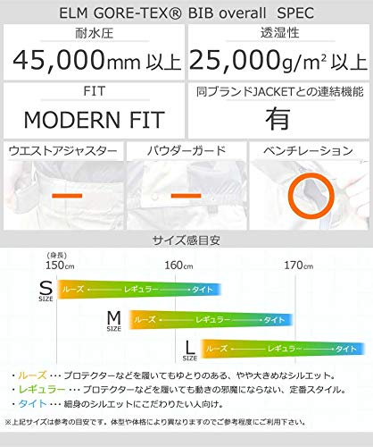 「 ELM GORE BIB overall」は、ゴアテックスを採用したスノボ用ビブパンツです。そのため機能性に優れており、どんな環境下のスノボでも安心して利用できます。また、トイレ時にジャケットを脱がなくてもいい構造になっているため、スノボ中も快適に使用できるでしょう。