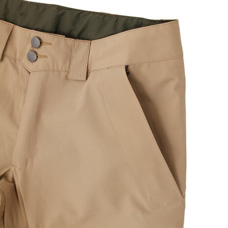 雪の降るアウトドアでも快適に履けるこちらのスノーボードで役立つメンズ用パンツは、ブラシ付きトリコット裏地のハンドウォーマーポケットもついていて便利です。腰回り部分のサイズ感を調節できるように、内側部分にはウエストバンドが採用されました。