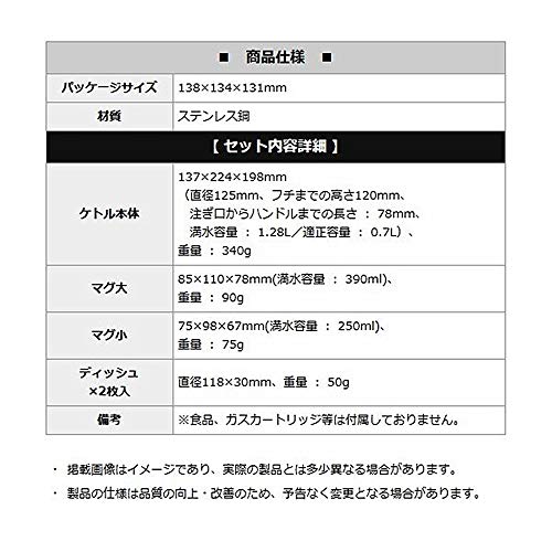 | サイズ | ケトル本体/137×224×198mm(直径125mm、フチまでの高さ120mm)、 注ぎ口からハンドルまでの長さ:78mm |