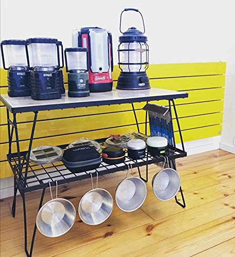 別売りとなりますが、オプションアイテムの天板やラックを2つ組み合わせて使うと利用シーンの幅を広げられます。散らかりがちなテントサイトをスッキリと片付けるのにおすすめ。携帯に便利な収納ケース付きです。