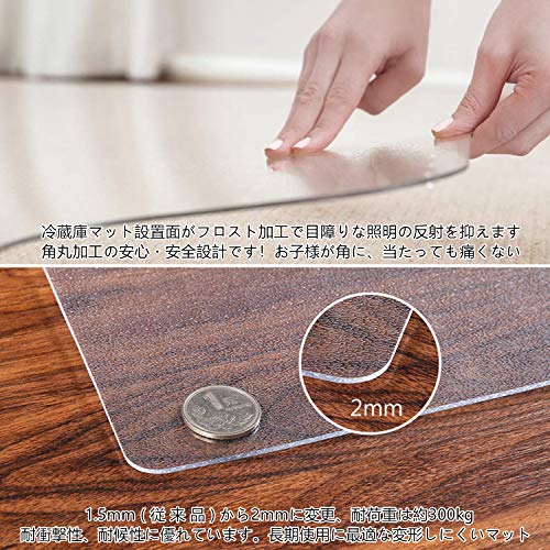 厚みは2mmと薄型なので目立ちにくく、さらに半透明なのでインテリアにこだわる方でも使いやすいでしょう。値段は高めの冷蔵庫マットですが、その分大容量なのでたっぷり使えます。