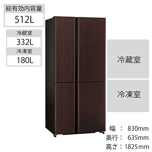 大容量なのに奥行の目安は510㎜と、見やすく簡単に取り出せるのが特徴の冷蔵庫です。AQUA4ドア冷蔵庫512の年間の電気代の目安はいくらなのでしょうか。