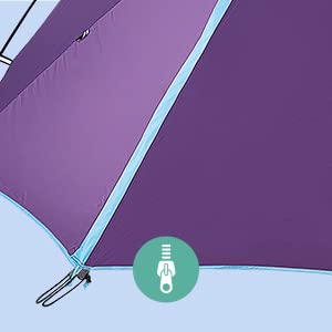 テント頂点の両サイドに備えられたベンチレーターで通気性を確保し、スカートで雨や雪の侵入を防ぎます。