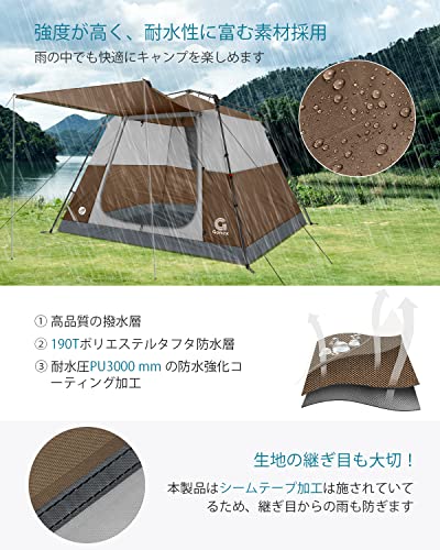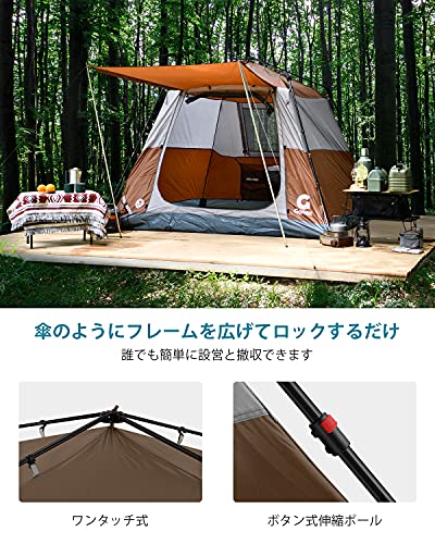 3位にランクインした「Gonex/キャンプテント」は、前室付きのワンタッチタイプ。短時間で設営・撤収できるため、初心者にもおすすめです。