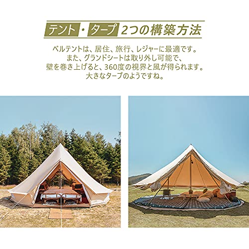 テント上部には煙突穴が付いているため、テント内でも料理をしたり薪ストーブ使用したりと幅広く使えます。また、スカート付きとなっており、雨や雪が室内に侵入しにくいのもポイントです。