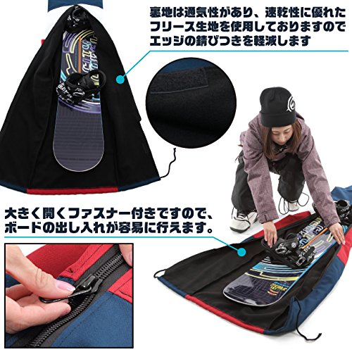 ニット生地ですがクッションが入っているため、スノーボードをしっかりと保護できるでしょう。また、テープでボードを固定できるのも特徴的です。大切なスノーボードをガードできるため、安心して使いましょう。