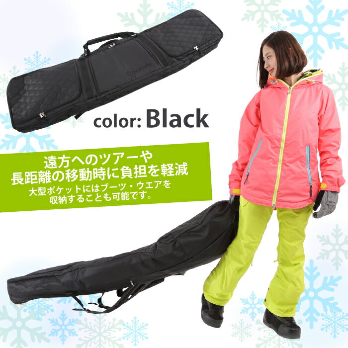 シンプルな黒色のスノーボードケースなので、ウェアにも馴染みやすいです。シンプルなスノーボードケースをお探しの場合は、是非チェックしてみてください。