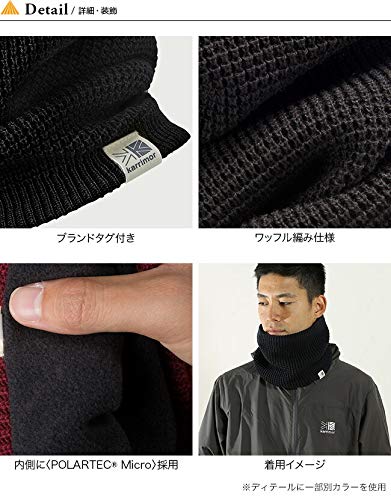 カリマーより販売されているスノーボードにおすすめなこちらのワッフルネックウォーマーは、表側がワッフル編みのおしゃれなデザインを採用しています。