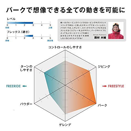 オールラウンダーとしてさまざまなフリースタイルに挑戦してみたい方はこちらのキャピタのスノーボード板がおすすめ。フリーラン・グラトリ・パークといった全フリースタイルに向いており、初心者でもスノーボード板の扱いやすさが簡単です。