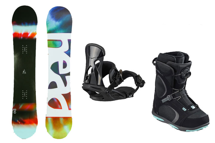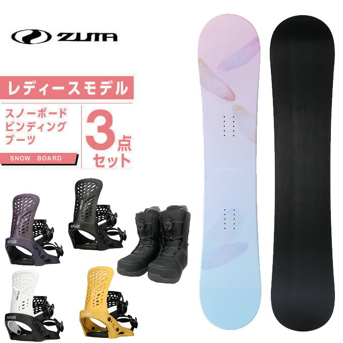 スノーボード初心者の女性におすすめなこちらの3点セットは、フレックスがとても柔らかく、初心者にも扱いやすいオールラウンドタイプのボード板がついてきます。快適な装着感と、安定感ある操作性でスノーボードの上達をサポートするビンディングも手に入る3点セットです。