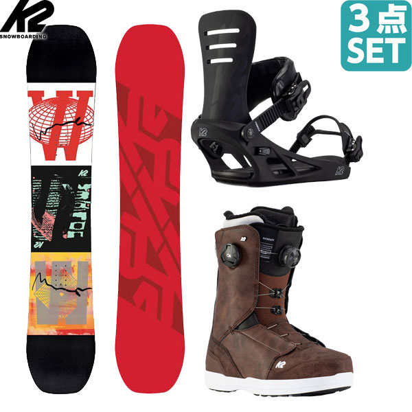 アメリカ合衆国の人気スノーボードブランド・K2が販売するこちらの商品は、スノーボード初心者が使用するのにもおすすめな高性能ボードを含めた3点セットです。TOP・SOLE面どちらにも同じ絵柄のデザインを採用しています。