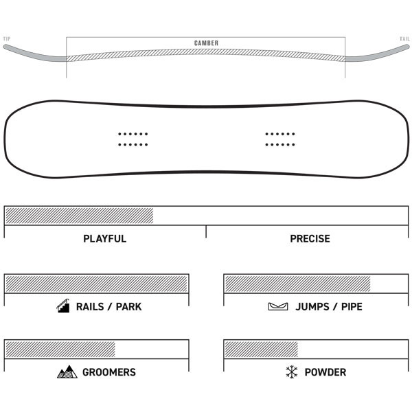 スノーボード初心者から中級者がトリッキーな動きを習得しやすいボードです。フリースタイルライドを楽しみたいスノーボーダーにも最適な一台になります。