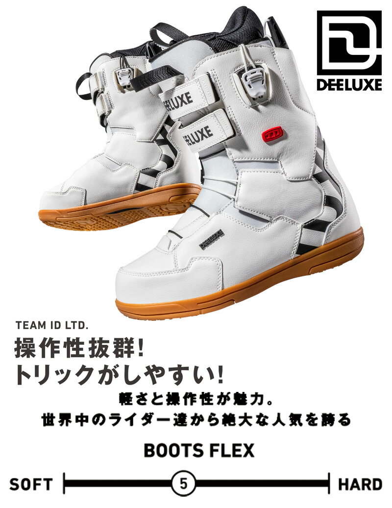 ディーラックスの「21-22TEAM ID LTD」は、自分好みの調整が叶うスノーボードブーツです。ダブルパワーベルトという機能を搭載しており、ベルトの締め方で硬さを調節できます。そのため自分好みのスノーボードブーツが、自由に作れるモデルです。