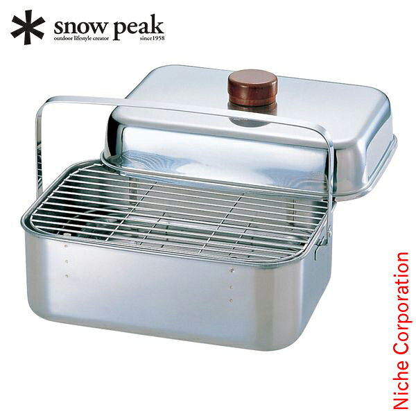 燻製器もおしゃれでデザイン性の高い物が欲しいという人におすすめなのがスノーピークのコンパクトスモーカーです。こちらはコンロにかけて使うタイプで熱燻、温燻におすすめ。燻製器内部は2段になっており、食品に合わせて熱源からの高さも調整しやすく好みの燻製を作りやすいでしょう。