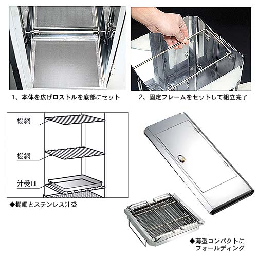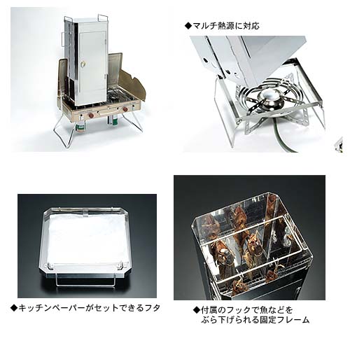 4段の棚網をセットすることができるので、一度にたくさんの食材を燻製できるのも特徴です。ユニフレームでは、棚網やスモーカーバスケットなどが単品でも販売されています。