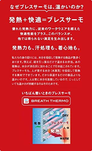 冬場の屋外作業で履ける防寒性の高いパンツをお探しの方にもおすすめなこちらのパンツは、体からの水分を吸収し、吸着熱を利用して温度を上昇させるブランド独自の発熱素材「ブレスサーモ」を採用しているため、下半身をしっかりと保温しながら快適に履けるでしょう。