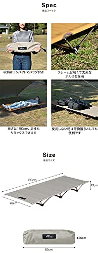 | 使用時サイズ | ハイver:長さ約190cm x 横幅約65cm x 高さ約37cm、ローver:長さ約190cm x 横幅約65cm x 高さ約17cm |
